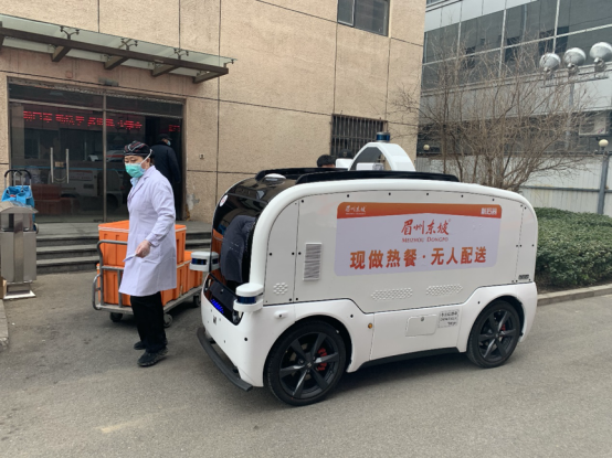 无人驾驶车辆正正在高风险区域运送物资并为病院消毒,
